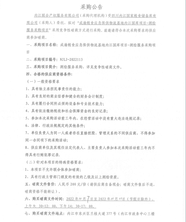成渝粮食应急保供物流基地内江国库项目-测绘服务采购项目