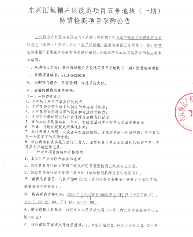 东兴旧城棚户区改造项目五号地块(一期)防雷检测项目采购公告