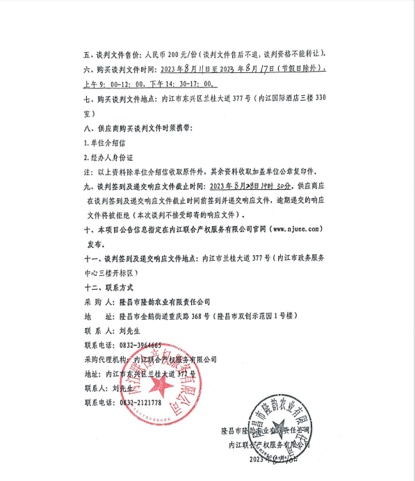 隆昌市隆韵农业有限责任公司县级水库委托运营服务项目采购公告