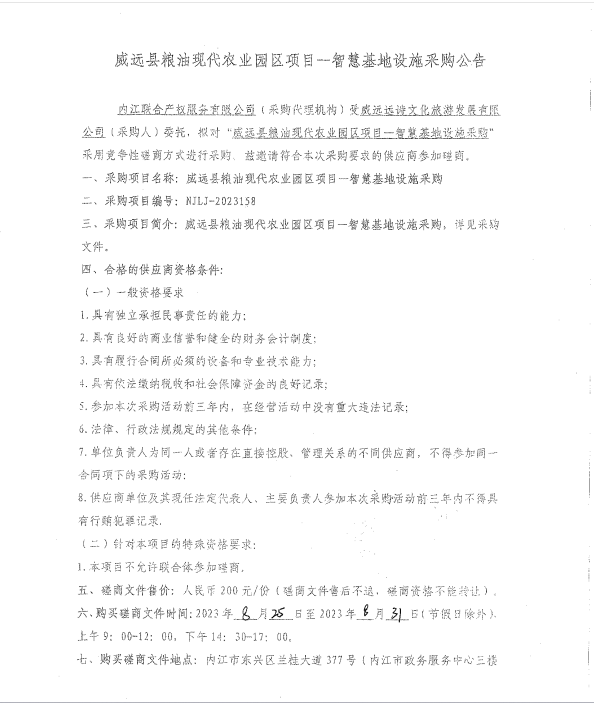 威远县粮油现代农业园区项目—智慧基地设施采购公告