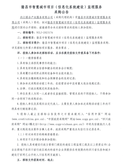 隆昌市智慧城市项目(信息化系统建设)监理服务采购公告