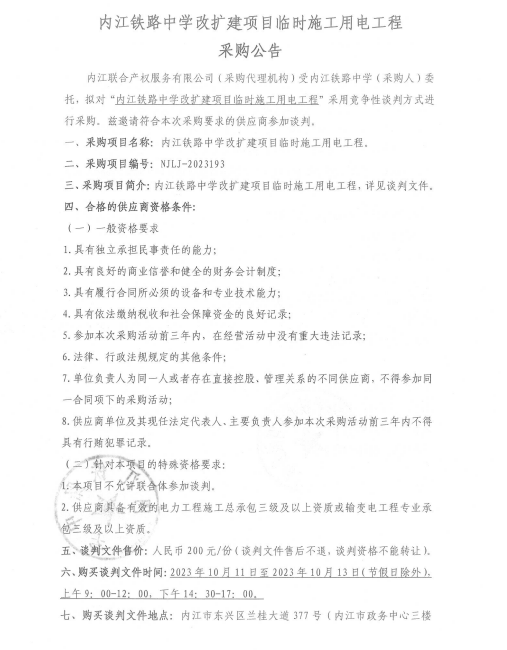 内江铁路中学改扩建项目临时施工用电工程采购公告