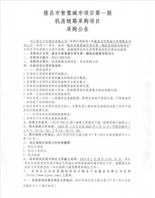 隆昌市智慧城市项目第一期机房链路采购项目采购公告