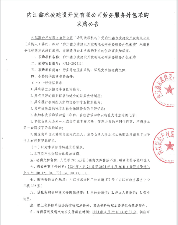 内江鑫永凌建设开发有限公司劳务服务外包采购采购公告