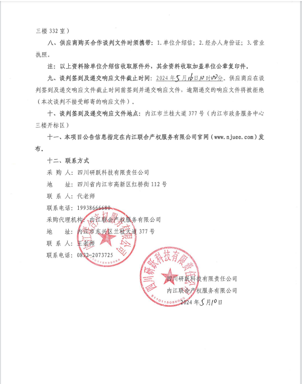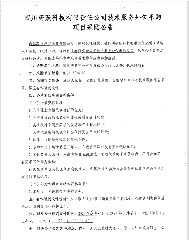 四川研跃科技有限责任公司技术服务外包采购项目采购公告