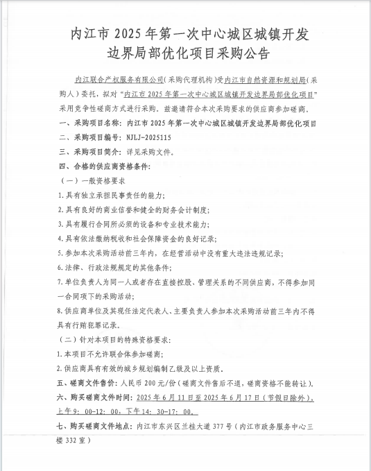 内江市2025年第一次中心城区城镇开发边界局部优化项目采购公告