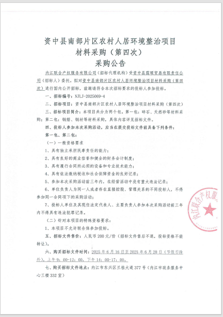 资中县南部片区农村人居环境整治项目材料采购(第四次)