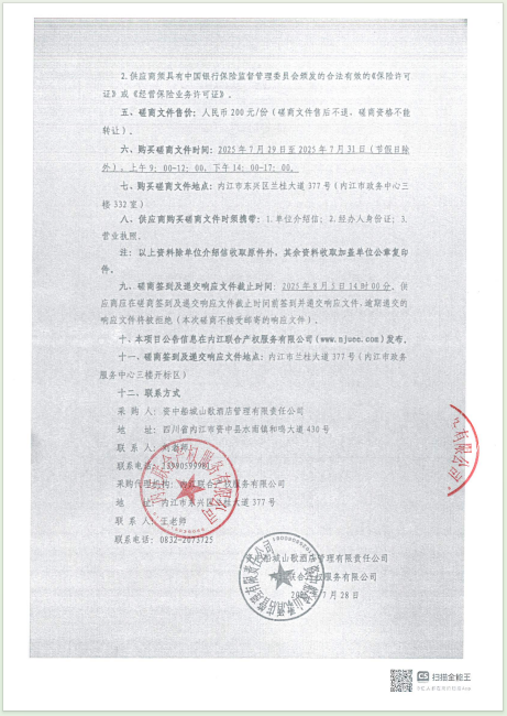 资中船城山歌酒店管理有限责任公司(资州·爵怡温德姆酒店)财产综合险采购采购公告