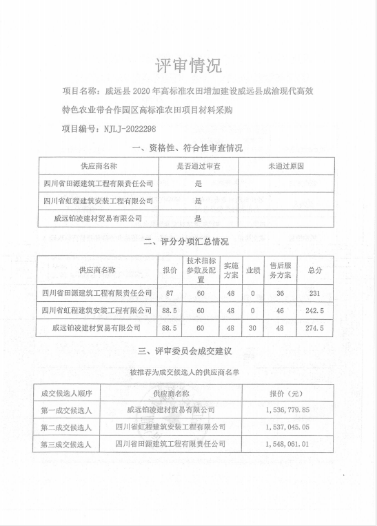 威远县2020年高标准农田增加建设威远县成渝现代高效特色农业带合作园区高标准农田项目材料采购结果公示