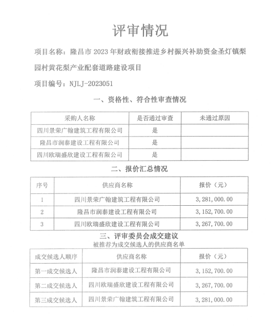 隆昌市2023年财政衔接推进乡村振兴补助资金圣灯镇梨园村黄花梨产业配套道路建设项目结果公告