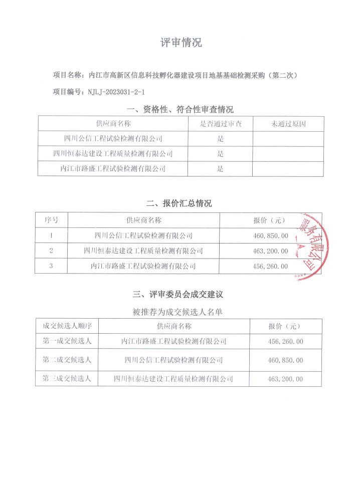内江市高新区信息科技孵化器建设项目地基基础检测采购(第二次)结果公告