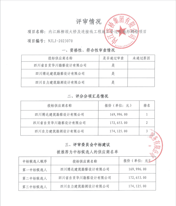 内江麻柳坝大桥及连接线工程施工全过程地形测绘项目结果公告