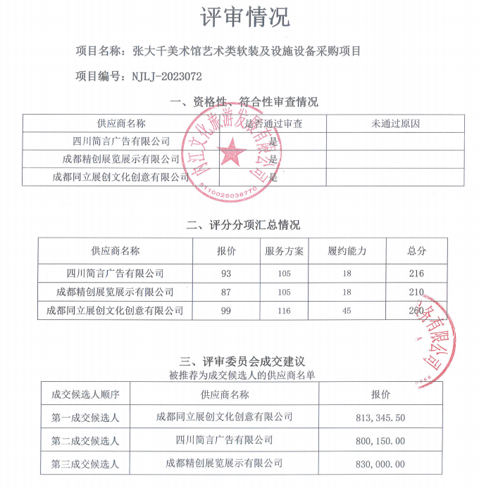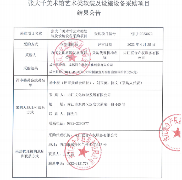 张大千美术馆艺术类软装及设施设备采购项目结果公告