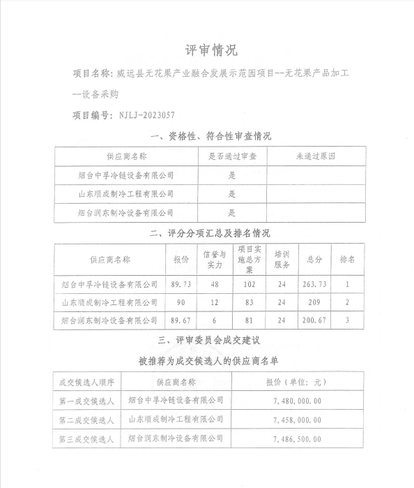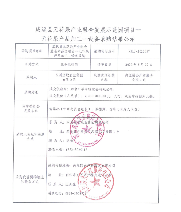 威远县无花果产业融合 发展示范园项目--无花果 产品加工--设备采购结果公示