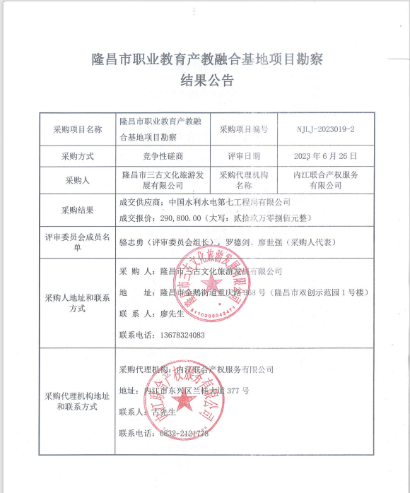 隆昌市职业教育产教融合基地项目勘察结果公告