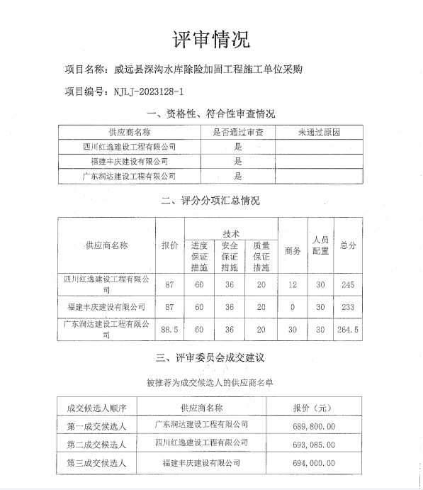 威远县深沟水库除险加固工程施工单位采购结果公示