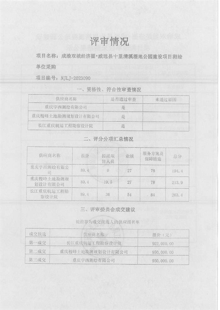 成渝双城经济圈•威远县十里清溪湿地公园建设项目测绘单位采购结果公示