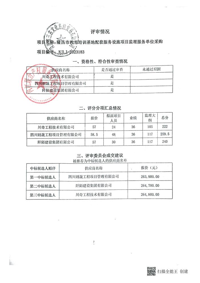 隆昌市教育培训基地配套服务设施项目监理服务单位采购结果公告