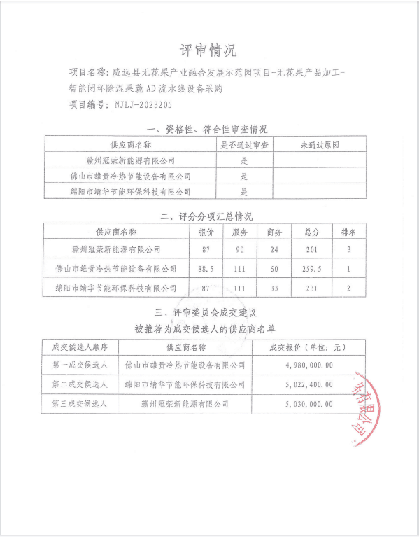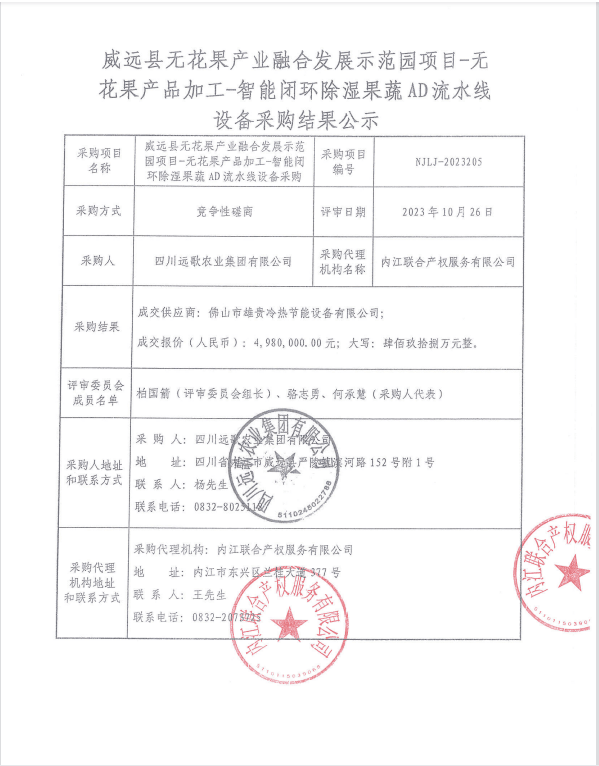 威远县无花果产业融合发展示范园项目-无花果产品加工-智能闭环除湿果蔬AD流水线设备采购结果公示