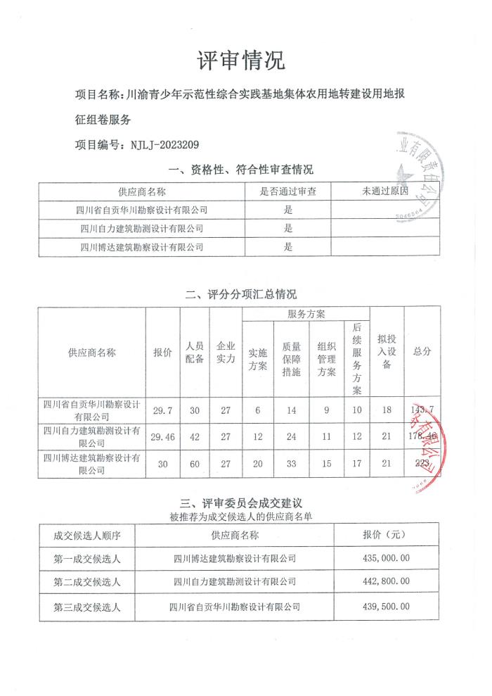 川渝青少年示范性综合实践基地集体农用地转建设用地报征组卷服务结果公告