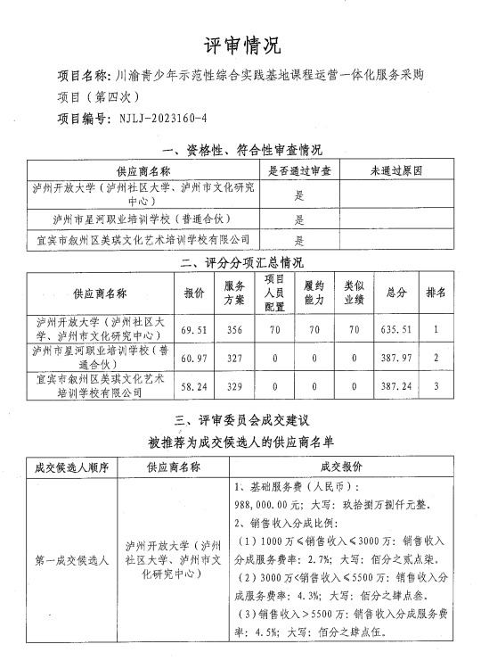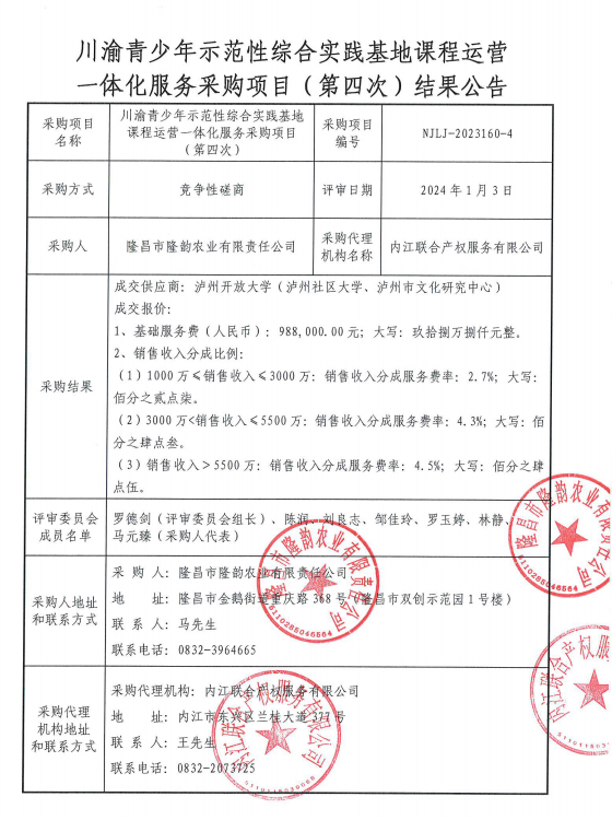 川渝青少年示范性综合实践基地课程运营一体化服务采购项目(第四次)结果公告