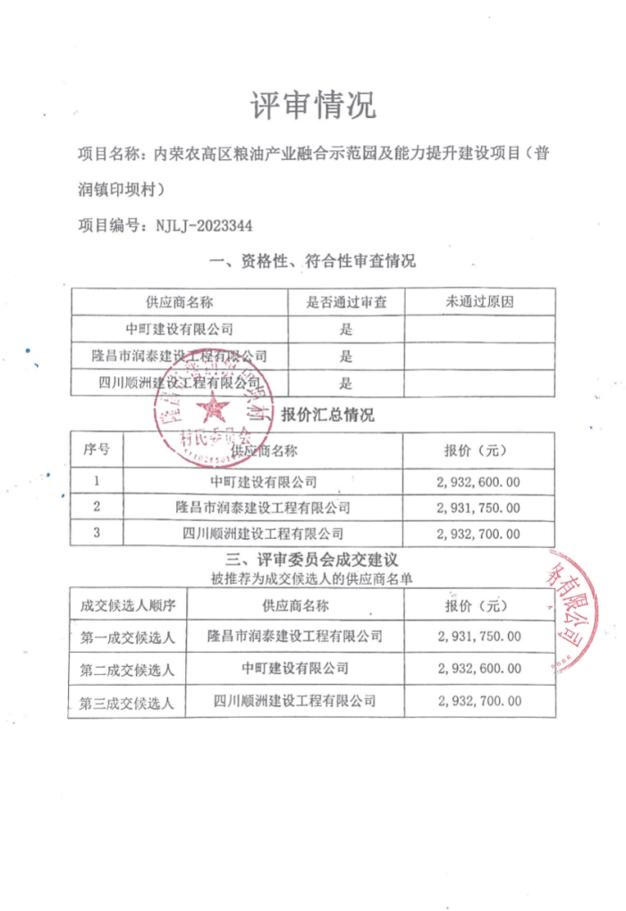 内荣农高区粮油产业融合示范园及能力提升建设项目(普润镇印坝村)结果公告