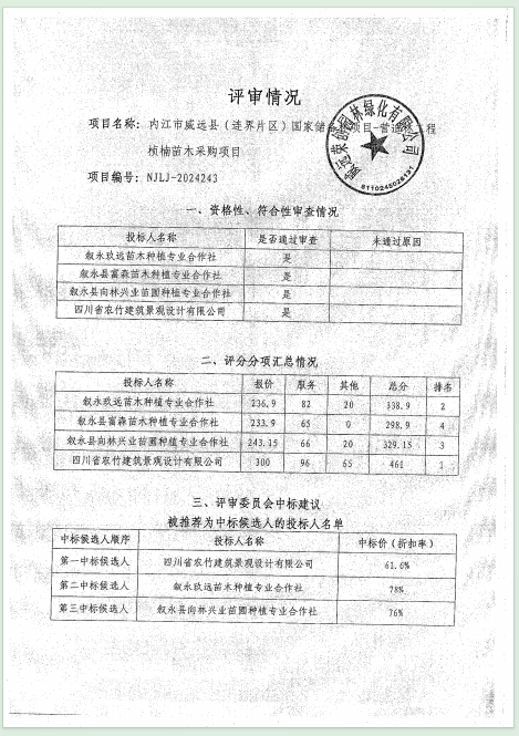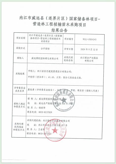 内江市威远县(连界片区)国家储备林项目-营造林工程桢楠苗木采购项目结果公告