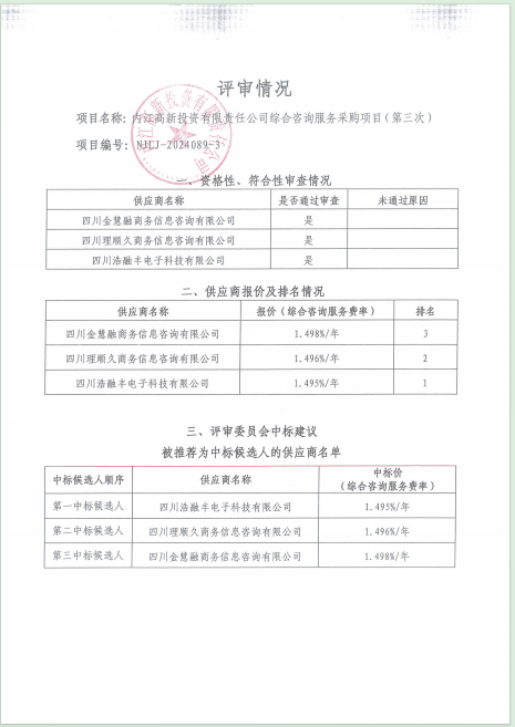 内江高新投资有限责任公司综合咨询服务采购项目(第三次)结果公告