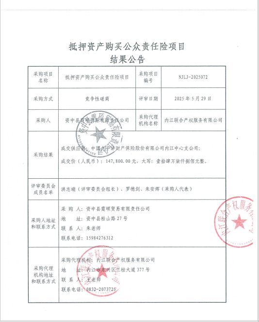 抵押资产购买公众责任险项目结果公告