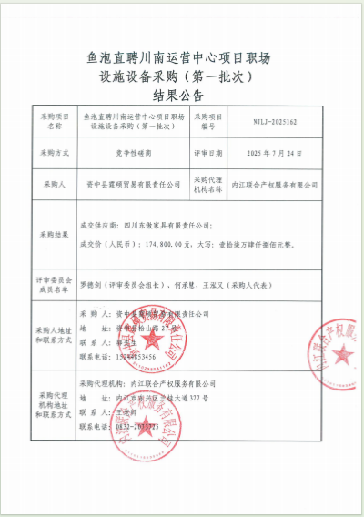 鱼泡直聘川南运营中心项目职场设施设备采购(第一批次)结果公告